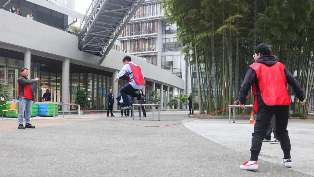2分钟内,摇绳与跳绳默契配合,每一次成功的跳跃都是对团队凝聚力的最佳诠释,眼疾“脚”快,接续不断,失误重来,斗志不减,青春活力与不屈不挠精神熠熠生辉。